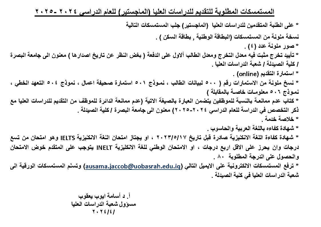 Documents required to apply for postgraduate studies (master’s) for the academic year 2024-2025