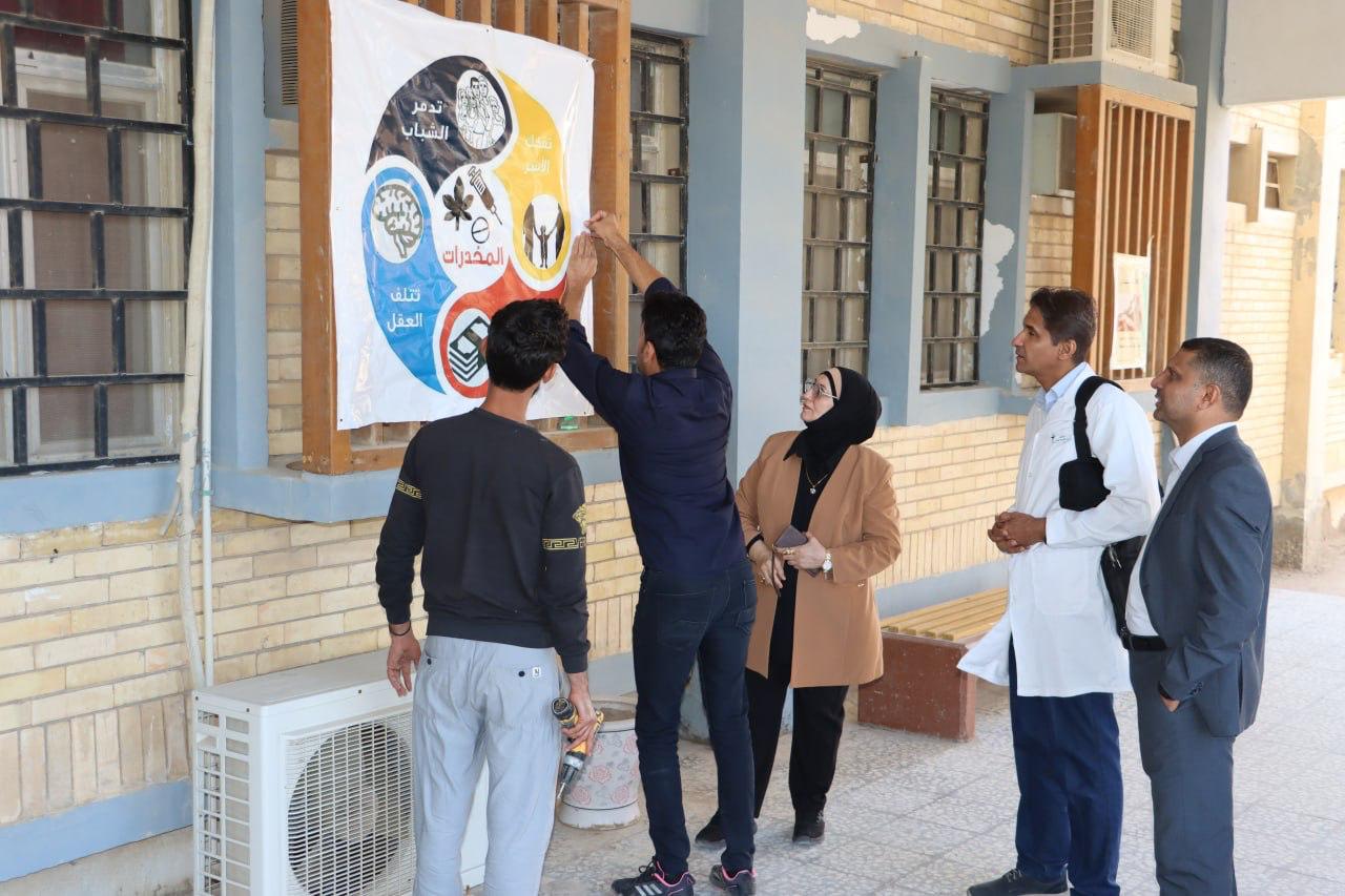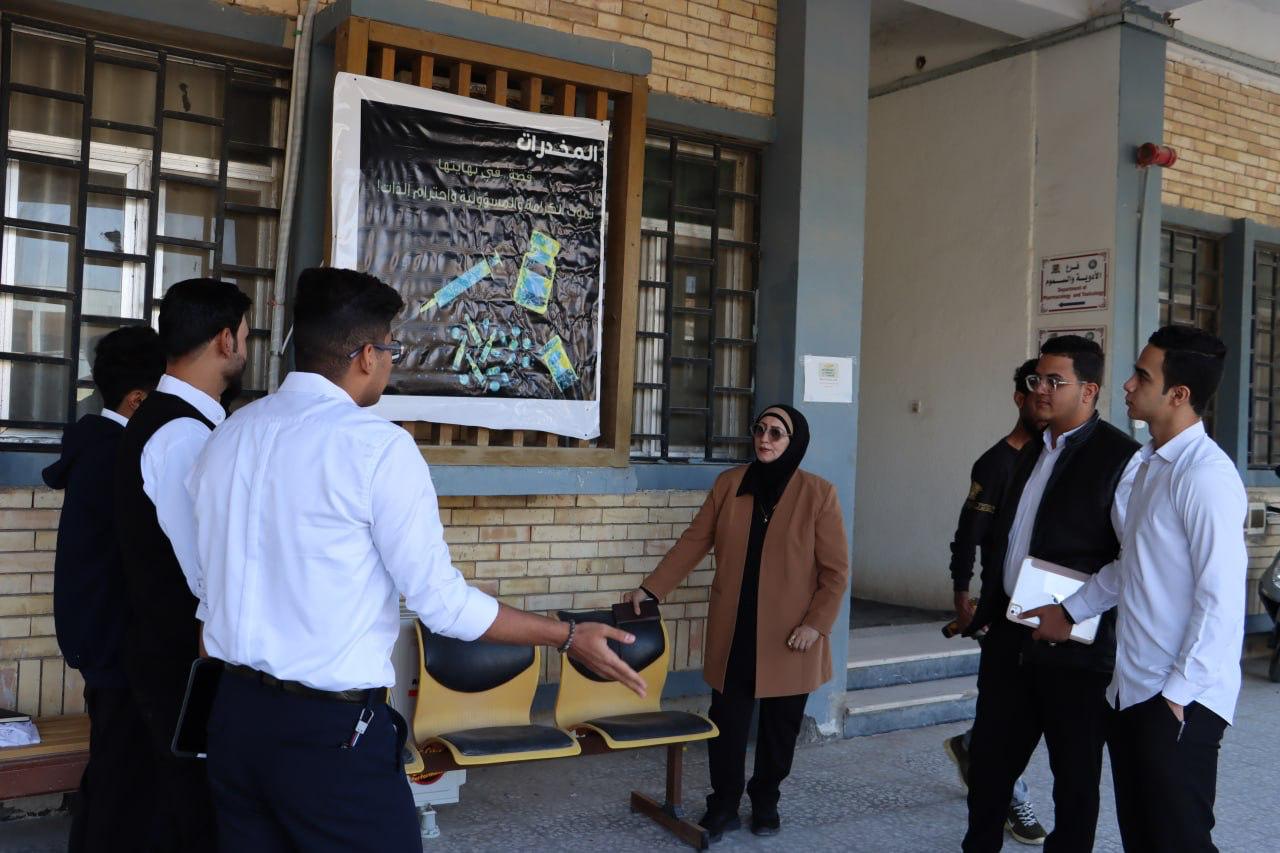 نظّمت شعبة النشاطات الطلابية في كلية الصيدلة في جامعة البصرة حملة توعوية داخل أروقة الكلية تضمنت توزيع وتعليق بوسترات تعريفية تهدف إلى نشر الوعي بخطر المخدرات وتأثيرها السلبي على الفرد والمجتمع. وجاءت هذه المبادرة ضمن برامج الشعبة الهادفة إلى تعزيز ثقافة الطلبة وتوجيههم نحو السلوكيات الصحية إضافة إلى دعم الجهود الوطنية الرامية للحد من انتشار هذه الآفة. وبينت مسؤول الشعبة الدكتورة سناء جواد المياح ان البوسترات احتوت على رسائل توعوية تعرّف بأنواع المخدرات وأضرارها الصحية والاجتماعية والقانونية مع التأكيد على دور الطالب في مواجهة هذه الظاهرة والإسهام في نشر الوعي بين أقرانه. وأكدت المياح أن هذه الحملة تأتي استمراراً للأنشطة التثقيفية التي تنفذها الكلية سنوياً والمتعلقة بالصحة العامة والأمن المجتمعي وبما يعزز بيئة جامعية آمنة وخالية من السلوكيات الضارة.