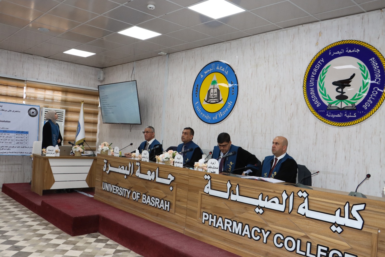 ناقشت كلية الصيدلة في جامعة البصرة رسالة الماجستير (تحضير وصياغة الديكلوفيناك كسائل أيوني لتحسين الانحلال) وتضمنت الرسالة التي قدمتها الطالبة شمس عدنان عبد النبي تصميم وتحضير ثلاثة أشكال سائلة أيونية مبتكرة من دواء الديكلوفيناك بهدف معالجة مشكلة ضعف الذوبانية والانحلال التي تحد من كفاءته الصيدلانية  وأظهرت نتائج الدراسة  ان الانحلال  كان بزيادة معنوية في معدل وسرعة تحرر الدواء مقارنةً بالديكلوفيناك النقي، وكانت الفورملا الأولى المحضّرة باستخدام 1-بيوتيل-3-ميثيل إيميدازوليوم هي الأعلى في نسبة الانحلال، مما يؤكد تفوقها في تحسين الأداء الصيدلاني وإمكانية تطويرها كصيغة دوائية واعدة. هدف الدراسة هو تحسين الذوبانية ومعدل الانحلال لدواء الديكلوفيناك باستخدام استراتيجية تكوين السوائل الأيونية (API-Ionic Liquids) إضافة إلى تقييم تأثيرهذه التقنية على الخصائص الفيزيائية والكيميائية والحرارية للدواء وانعكاسها على أدائه الصيدلاني فضلاً عن دعم استخدام تقنية السوائل الأيونية كنهج حديث وواعد لتحسين الأداء الصيدلاني وزيادة احتمالية التوافر الحيوي، مما يفتح آفاقاً جديدة في تطوير الصيغ الدوائية للأدوية ضعيفة الذوبان.